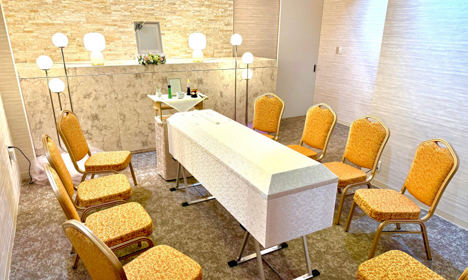 大阪市立瓜破斎場から車で3分の利便性に優れた立地で、ホテルライクをイメージし、清潔で豪華な空間を提供しており、1日1組限定の家族葬ホールです。ご親族控室とお寺様控室、小さなお子様連れでも安心のプレイルームや赤ちゃんおむつ交換台、ペット同伴OKと充実した設備が整えられています。